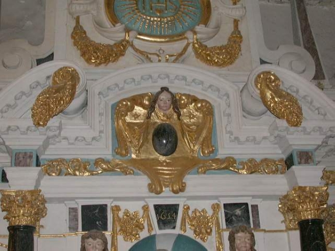 Date gravée et dorée sur la clef de la niche entrale : 1654.