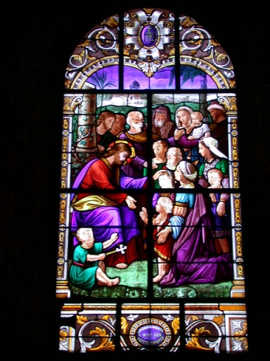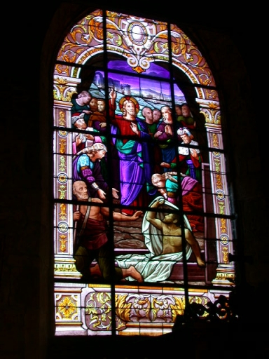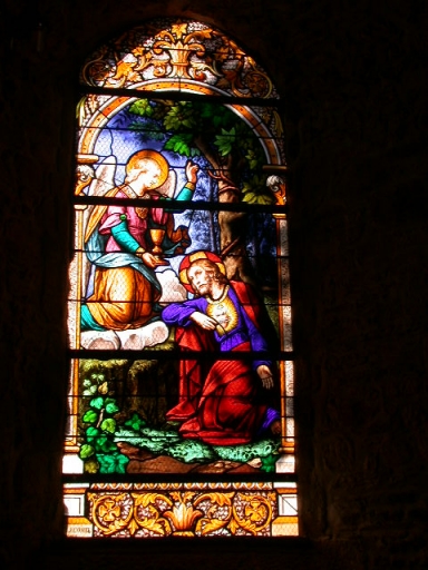 La verrière représentant la Communion de saint Jérome est copiée du tableau du Dominiquin (1630) conservé au Vatican.