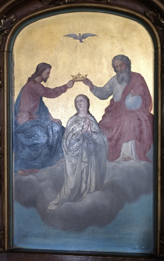 Ensemble de 4 tableaux : Dormition de la Vierge, Couronnement de la Vierge, Ange gardien, Ange saint Michel,