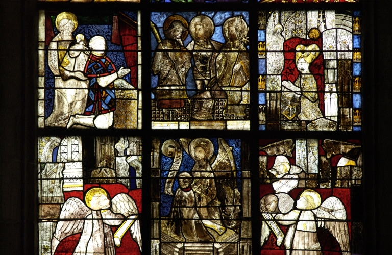 - verre transparent, peint, polychrome, grisaille, jaune d'argent