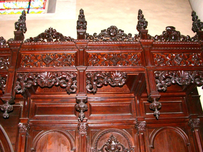 - bois, mouluré, tourné, découpé, décor dans la masse, décor rapporté, décor en haut relief, vernis