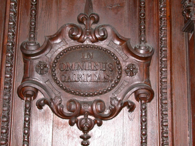 Inscription sur le lambris nord : IN / OMNIBUS / CARITAS ; sur le lambris sud : PAX / VOBIS.