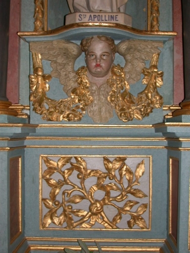Oeuvre restaurée en 1995. Le tableau du centre a disparu. Il est probable qu'il soit sous le décor peint.