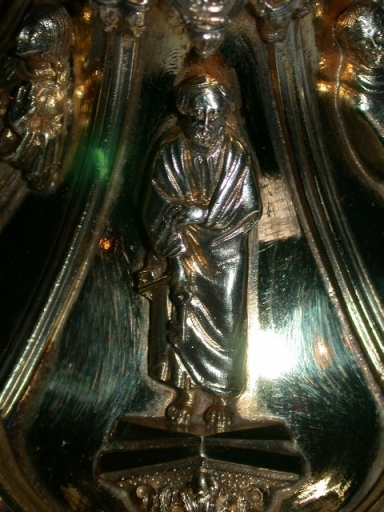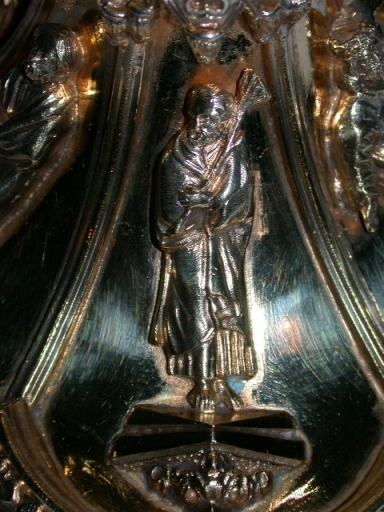 Inscription gravée sous le pied : DONNE PAR MR L'ABBE CONSTANTIN GUERIN NE EN SEPTEMBRE 1828 MORT CURE DE REDON 18 JUILLET 1890. Sur la boîte : Pour l'abbé Guérin.