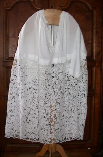 3 Aubes : toile (blanche) : coton, dentelle. Oeuvre déposée. 19e siècle. Représentation : ornementation végétale. Fig. 27.