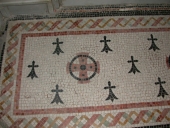 Inscription gravée sur la partie inférieure droite de l'autel : DON DE / MELLE LEBRETON. Inscription en mosaïque sur le devant d'autel : AVE MARIA.