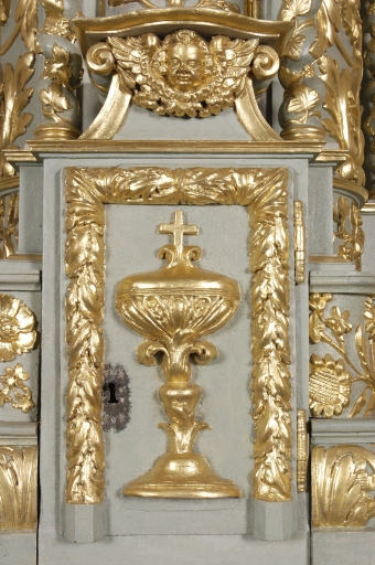 Ensemble de l'ancien maître-autel : autel, 2 tabernacles, exposition, retable, tableau d 'autel,