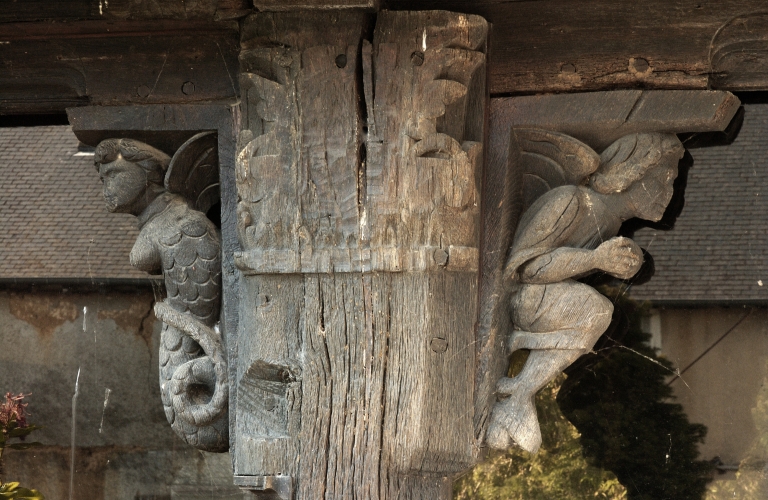Le porche a été transporté et remonté au nord-ouest du bourg, près de la maison de retraite.