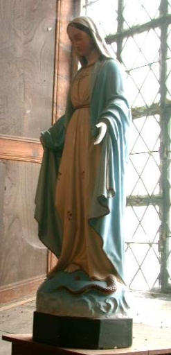 Statue : Immaculée Conception : plâtre : moulé, peint, polychrome, peint doré ; 96 h. La main droite a disparu. 1er quart 20e siècle. Fig. 61.