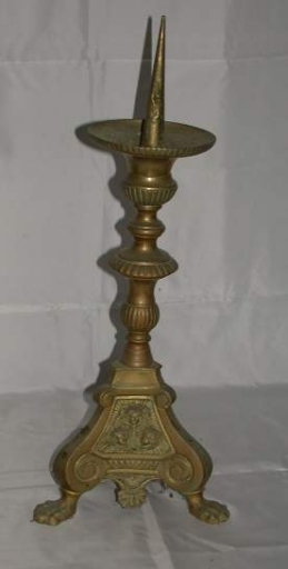 Paire 4 de Chandeliers d´église : métal : fondu, doré ; 40 h. Oeuvre déposée. 4e quart 19e siècle. Représentation : fleur de lys. Fig. 11.