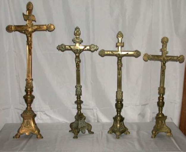 Croix d´autel 4 : métal : fondu, doré ; 57,5 h. Oeuvre déposée. 2e moitié 19e siècle. Représentation : Vierge ; Christ ; Saint Joseph. Fig. 14.