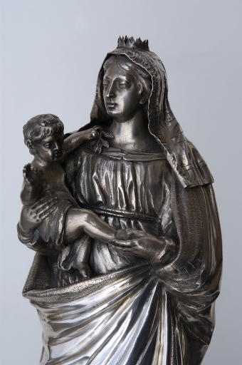 La couronne de l'Enfant a disparu. La partie inférieure du socle a été refaite ainsi que le décor en métal argenté.