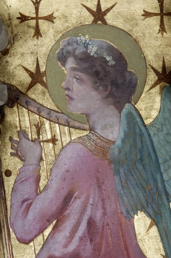 - calcaire, support peint, polychrome, peint à la poudre d'or, peint au pochoir