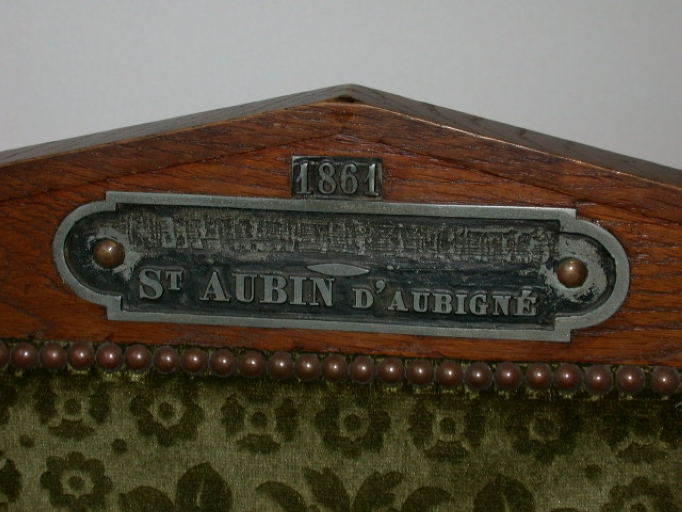 Inscription moulée sur la plaque de métal : 1861 / EMPIRE FRANCAIS / CE . ST . AUBIN D'AUBIGNE.