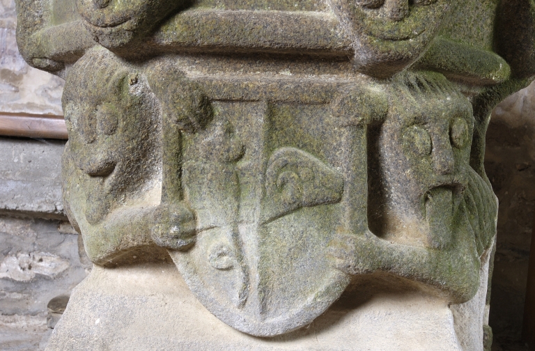 Armoiries non identifiées : mi parti à dextre : une salamandre ou un lézard ; à senestre : une tête de bélier.