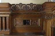 - bois, mouluré, décor dans la masse, décor en bas relief, peint, polychrome, peint à la poudre d'or
