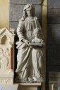 Le bois est fendu en plusieurs endroits. Main droite désolidarisée. La statue a été repeinte en blanc. Elle mériterait une restauration.