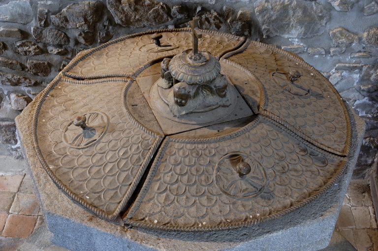 - PIOBJT Les fonts baptismaux à cuve unique ont été complétés au 19e siècle d'un couvercle de bonne venue.
