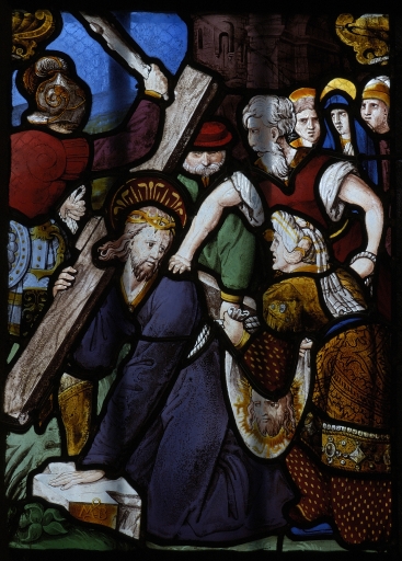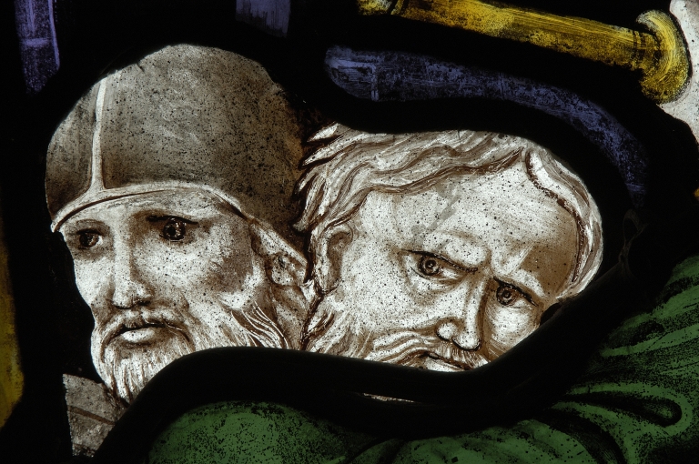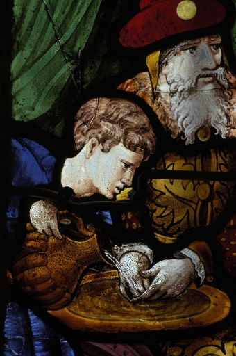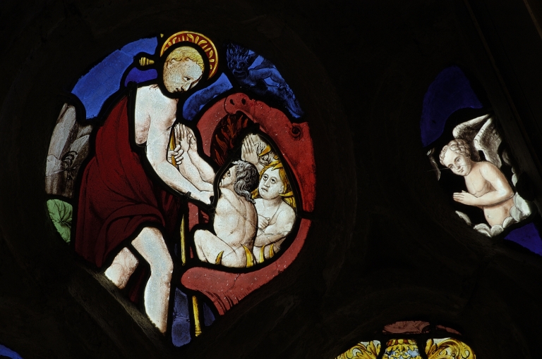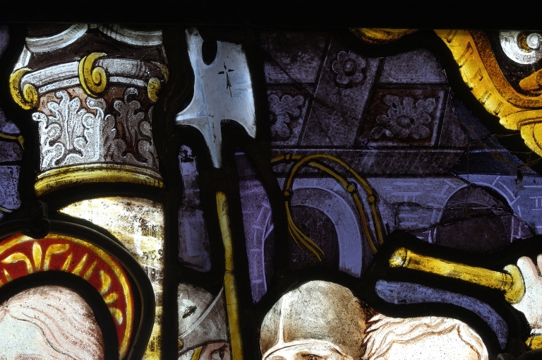 - verre transparent, gravé, peint, polychrome, émail, grisaille, jaune d'argent, sanguine