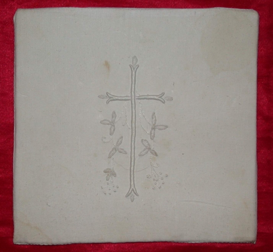 - lin, blanc toile, brodé, application sur textile, dentelle