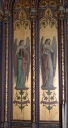 Porte du tabernacle : calice, blé, vigne ; rinceaux fleuris sur les ailes. Arcatures et rinceaux sur l'autel. Arcatures et pinacles sur le retable.