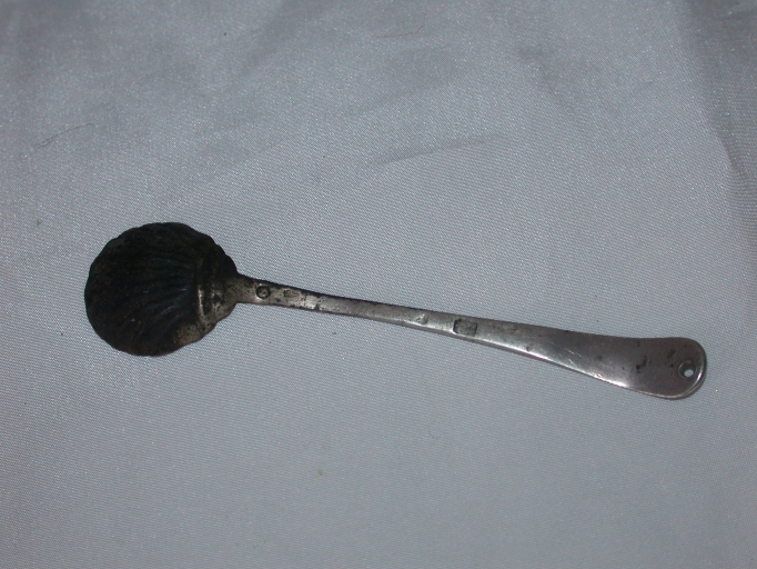 La navette a été enfoncée sur son pied ; essai de camouflage par de la peinture argentée. La cuiller est utilisée avec la navette 2.