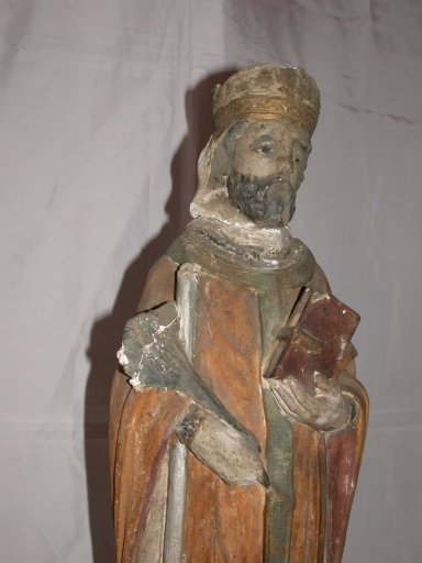 La tête est cassée ; il manque la partie supérieure de la palme, de la crosse et de la mitre.