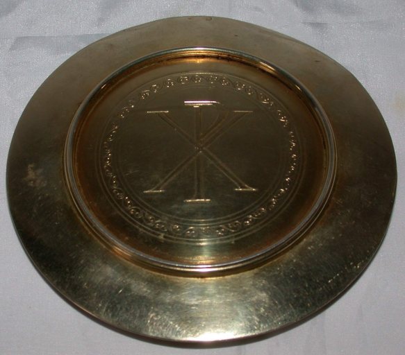 Couronne d'épines sur le noeud ; rinceau sur le pied du calice, et sur la patène autour du chrisme.