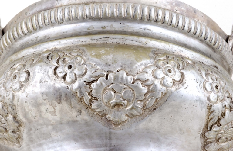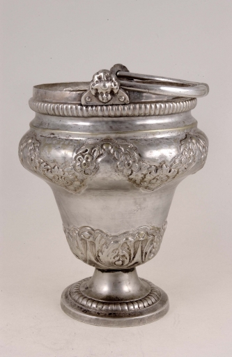 Modèle de seau à eau bénite reprenant les formes stylistiques du début du 18e siècle. Il existe quelques exemplaires de ce modèles en Ille-et-Vilaine (4 dénombrés à ce jour).