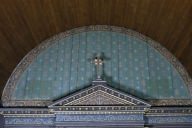 Traces d'ancienne couche de polychromie (imitation marbre) sous la couche actuelle datant de 1894.