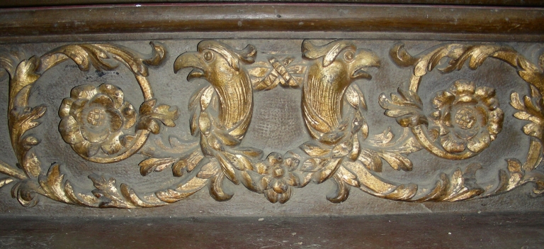 - bois, décor en ronde-bosse, peint, polychrome, peint à la poudre d'or, faux marbre