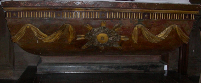 STE ANNE et ST JOSEPH écrit sur l'entablement/la frise du retable.