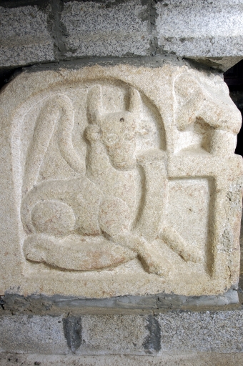 La base de l'autel de Jeanne d'Arc est très certainement la base d'un calvaire sur laquelle sont représentées le lion de saint Marc, le boeuf de saint Luc et sainte Véronique tenant le voile du Christ.