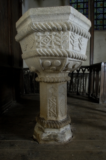 Les fonts baptismaux ont été probablement réalisés entre 1491, comme en témoigne le décor de fleur de lys encadré d'hermines -symbole de l'alliance entre la France et la Bretagne - et 1520, date vers laquelle la famille de Tinténiac change d'armoiries.