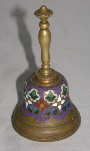 Etoiles et représentation végétale en émail polychrome sur le plateau et la clochette ; vigne et roseau en creux sur le plateau.