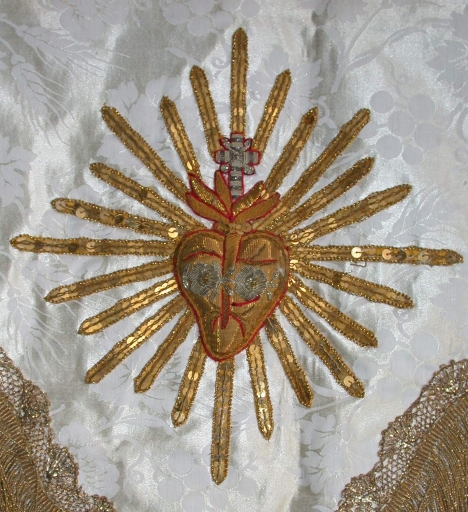 Un motif orne le centre de chaque face : croix rayonnante, I.H.S., coeur transpercé, Agneau aux sept sceaux.