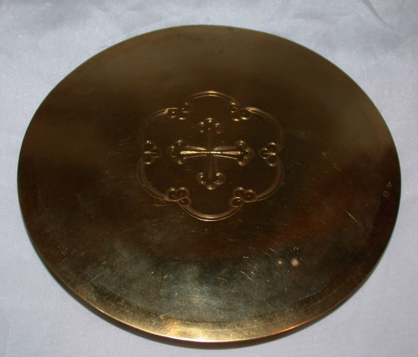 Sur la patène : croix ; sur le calice : ornementation.