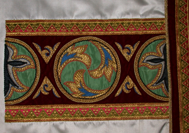 - soie, blanche satin, application sur textile, brodé, polychrome