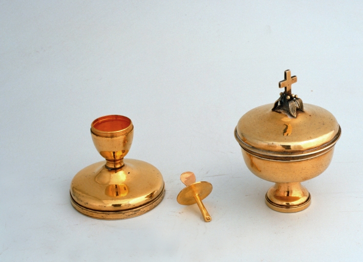 Exemple assez rare de ciboire-christmatoire d'Ancien Régime.