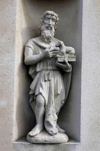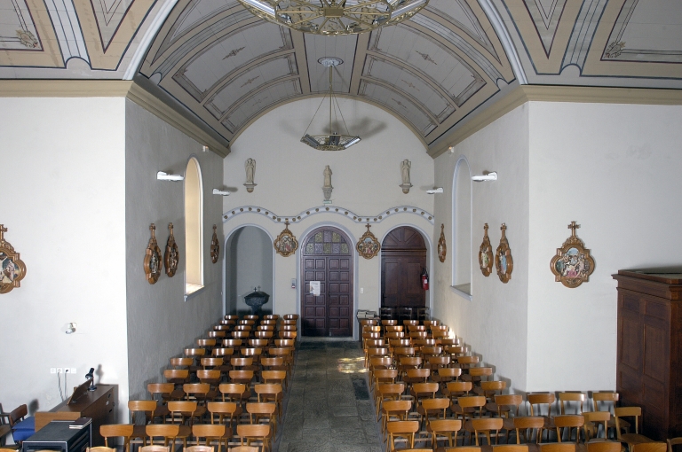 Le programme de création du mobilier est complété par 6 baies représentant sainte Anne, saint Joseph, saint Pierre, saint Jean, l'Ascension du Christ et l'Assomption de la Vierge. Jusqu'en 1945, les deux niches de la façade occidentale étaient ornées de statues en bois. Des statues récentes en granite les remplacent.