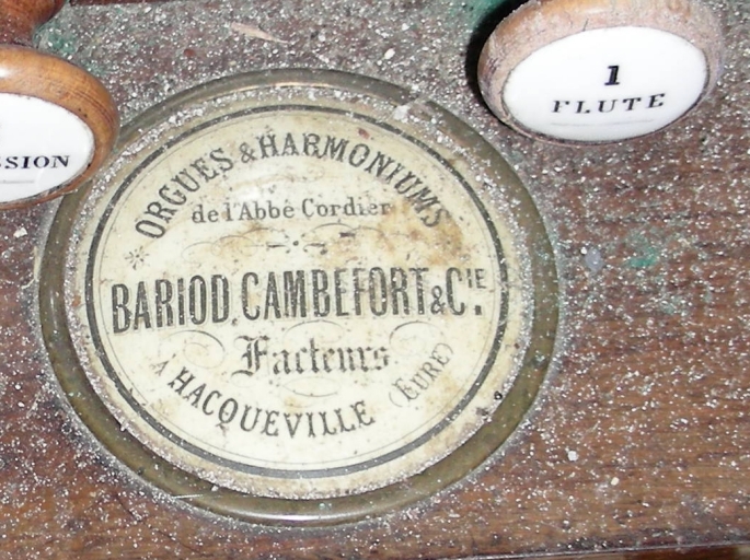 ORGUES & HARMONIUMS/de l'abbé Cordier/BARIOD CAMBEFORT & Cie./Facteurs / HACQUEVILLE (Eure).