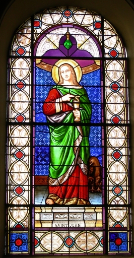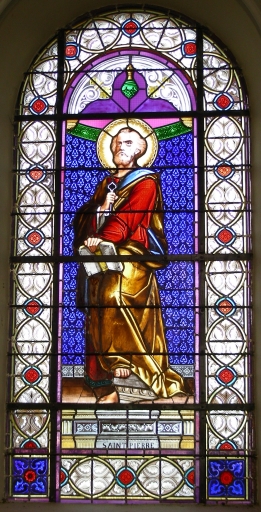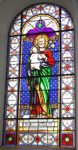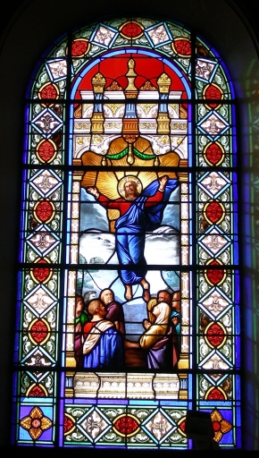 Ensemble de 6 verrières à personnages : Assomption de la Vierge ; Résurrection du Christ ; Saint Joseph ; Sainte Anne ; Saint Pierre ; Saint Jean,