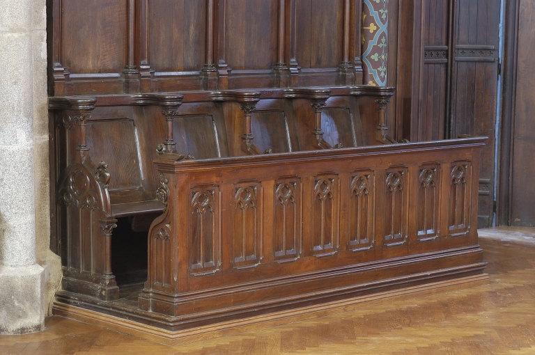 Les stalles sont vernies. Le lambris n'est pas vernis.