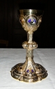 Ciboire du 18e siècle avec médaillons en émail ajoutés sur le pied et le couvercle. Seules la coupe, la fausse-coupe et la tige sont dans leur état initial.