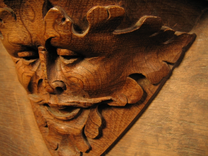 Sur la miséricorde : végétaux anthropomorphes. Des feuilles prennent l´aspect d´un visage d´homme bien individualisé, le nez fin, la bouche ouverte et les lèvres ourlées. De plus, il porte une moustache.