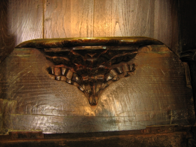 - chêne, taillé, ciré, décor en bas-relief, décor en demi-relief, décor en ronde-bosse