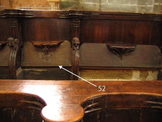 Stalle située sur le rang des stalles hautes côté nord du choeur.