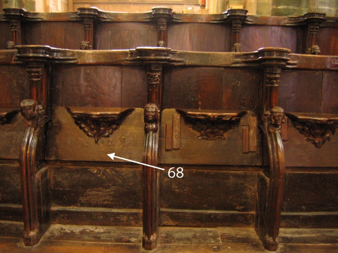 Stalle située sur le rang des stalles basses côté nord du choeur.