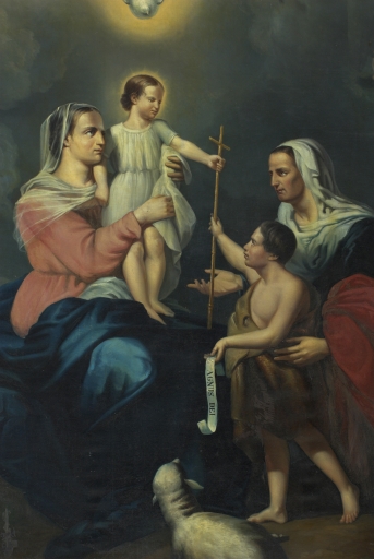Copie de La Sainte Famille, dite la Vierge de Séville, de Bartolome Esteban Murillo (1618-1682) faite et offerte par Aristide Paillard en 1863. Iconographie typiquement baroque par l'association de la Sainte Famille et de la Trinité.