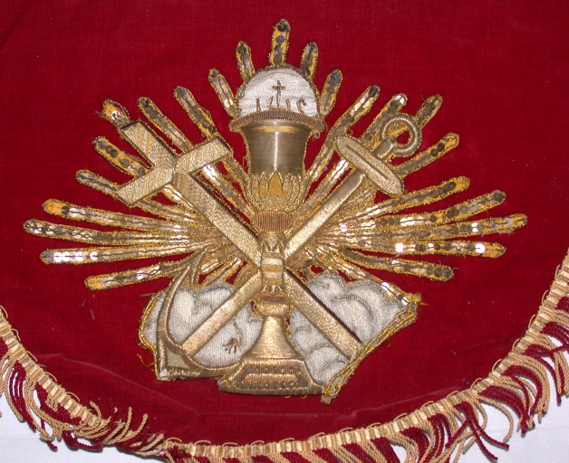 Calice et patène, ancre et croix en sautoir, rayons et nuée.
